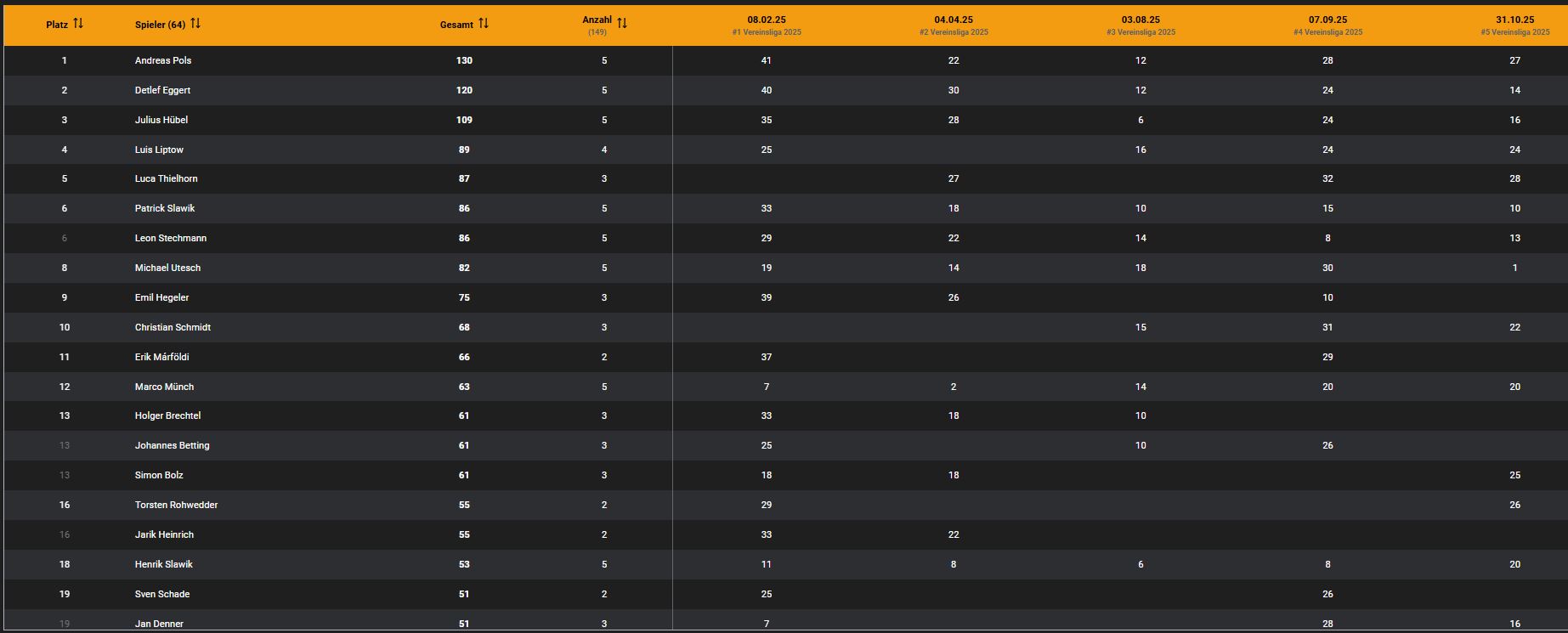 Nach dem ersten Turnier wird hier die Tabelle des Jahres 2025 stetig aktualisiert.